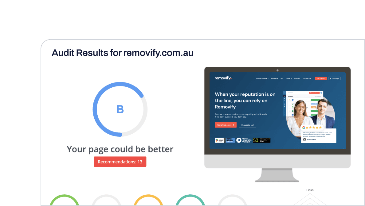 Wussten Sie, dass ein paar Änderungen an Ihrer internen Verlinkung Ihren Traffic erheblich steigern können? Unser kostenloses Website-Audit-Tool bringt Ihnen die guten Nachrichten – das Wo, Was und Wie von Änderungen an der internen Verlinkung, die Ihrem Traffic einen kräftigen Schub geben können.